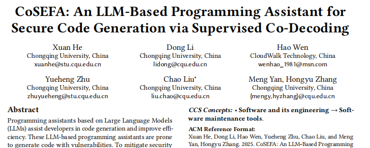 近日,云從科技與重慶大學(xué)大數(shù)據(jù)與軟件學(xué)院聯(lián)合研發(fā)的編程智能體——CoSEFA(Code SEcurity and Fix Agent)被軟件工程領(lǐng)域頂尖會(huì)議ACM SIGSOFT軟件工程基礎(chǔ)國際會(huì)議(FSE 2025)正式錄用。